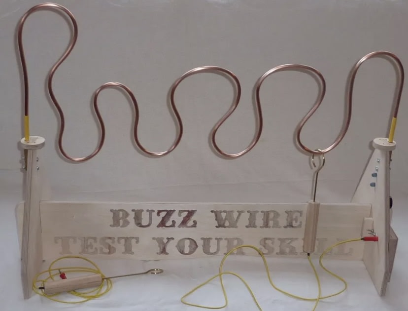 Can you beat the buzzer? Test your skills and nerves to get across from one end of a metal wire maze to the other end of the wire without touching using a grip mounted loop. The buzzer will sound and an optional led bulb will light up when the loop makes contact with the wire maze. The winner is the player who reaches to the end without buzzing in the shortest time. Two size loops are supplied for different levels of skill.